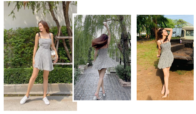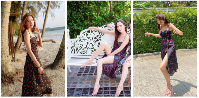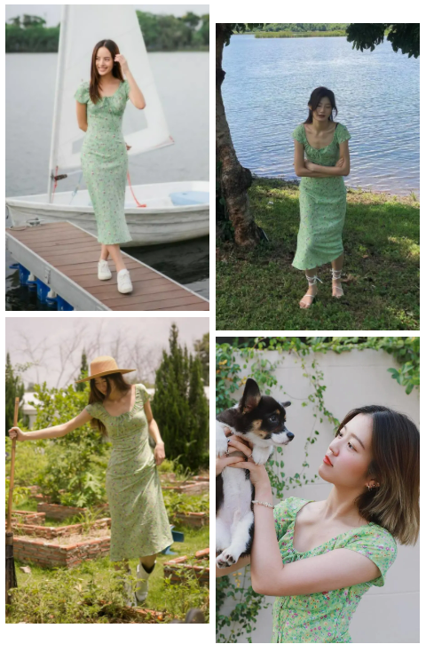 泰国品牌LOVRY DOVEY的绿色碎花裙,nychaa、gizzdear都穿了,无论是小白鞋、白色凉鞋还是白靴子,都很清爽。