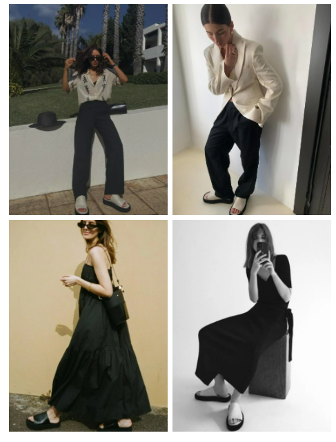 Debora Rosa、katarina和Catarina Mira的厚底拖鞋,来自By Malene Birger。款式挺简单耐看,黑白配或一身黑也能穿出味道。官网可以买~