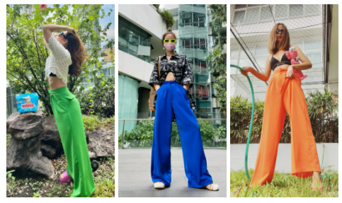 香波和好朋友ploy还穿过一条不同颜色的宽腿裤,来自ploy的品牌psmaterial,看上去十分清凉,夏天也能防蚊子叮咬。