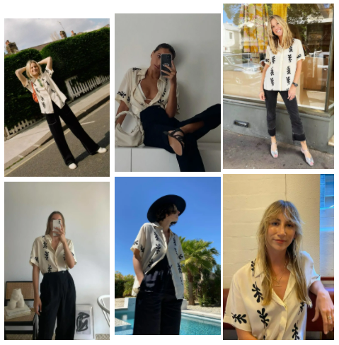 matteau的树叶短袖衬衫,伦敦博主Lucy Williams、Bella Thomas、造型师Dominique Nur、Jen Azoulay的照片里都有,轻轻松松搭一条黑裤子就可。官网2k出头。