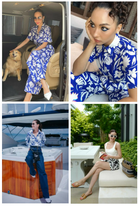 泰国品牌asava的衣服,最近好多女明星上身了。她们家出了很多印花,Aum和艺术家Carissa就穿过成套的。而Ann女王和Kim分别穿了印花衬衫和短裤。