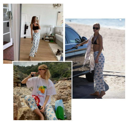 洛杉矶品牌CIAO LUCIA的印花裤,艺术家DINABROADHURST、摄影师Ella Karberg和kira的随意示范,好适合去海边的时候穿啊。官网人民币2k。