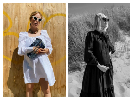 上面右边是新西兰博主Jessie Bush,她的娃娃裙来自德国品牌Lara Krude。