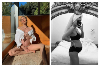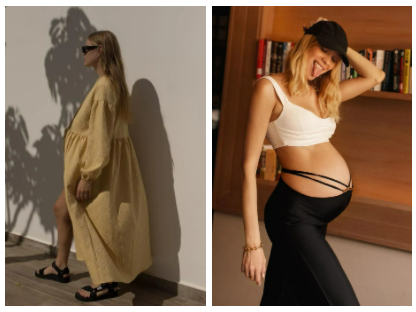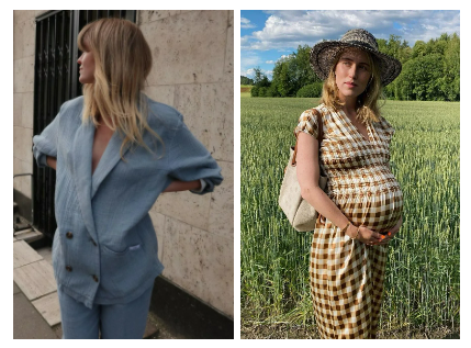 这是怀孕4个月的法国博主Anne-Laure Mais,和盲猜怀孕3个月的丹麦创意总监Jeanette Madsen