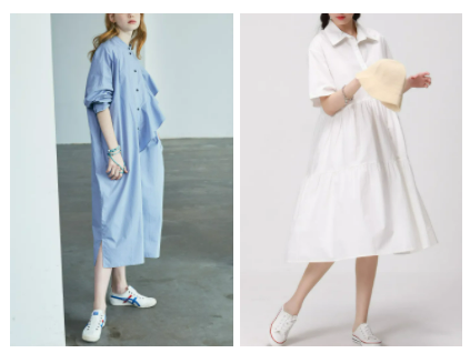 职场妈妈如果嫌娃娃裙太幼稚,还可以考虑一下宽大的衬衫裙。像这种硬挺的棉质衬衫裙就比较率性、洒脱,既适合通勤,又适合日常出去玩。