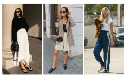 为了避免无趣,可以像法国博主Leia Sfez这样穿条骑行裤;造型师Diletta Bonaiuti呢,则是pick了一款特别的踩脚设计,一下就告别路人甲: