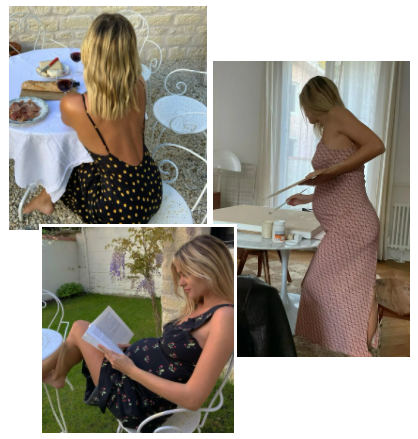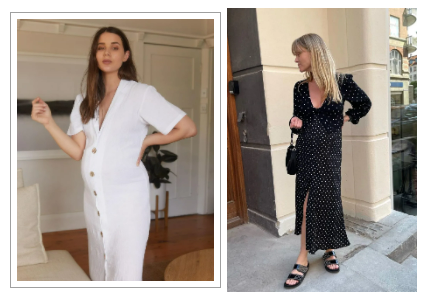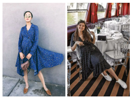 这款裙子的优势是包容性广。随着肚子越来越大,我们可以自由控制绑绳位置。韩裔博主Chriselle Lim和瑞士博主Elvira Legrand都曾在孕期pick过这款: