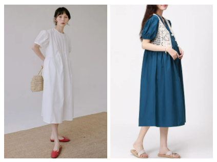 这两年刮起娃娃裙大风,对孕妈妈来说可真是好消息,舒舒服服就能踩在流行点上。