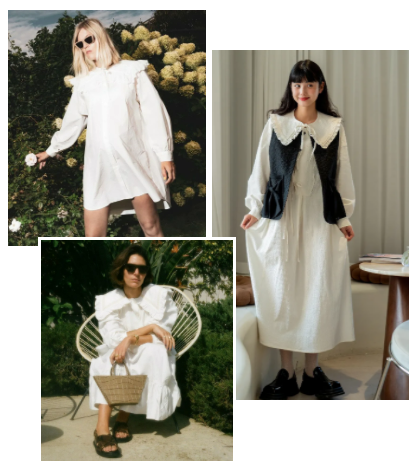 娃娃领的娃娃裙就更可爱了,我认识的好多妈妈都抓紧孕期努力可爱。不光适合baby face,时尚圈好几位冷面博主都穿上了~~