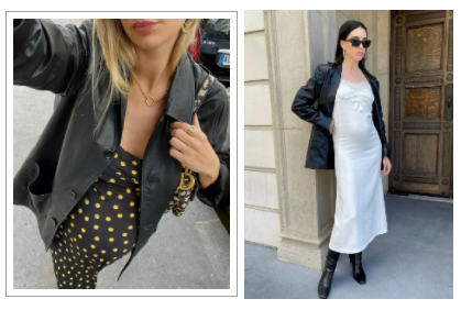 这种性感的吊带裙,到了秋天搭个帅气的皮衣,更有种叛逆的美。