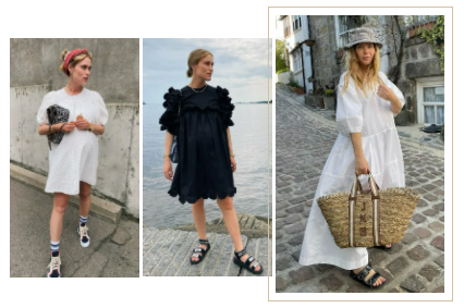 不止是沙滩凉鞋,还有编织渔夫鞋、人字拖、厚底鞋等…太多可以尝试的鞋款,都能让穿娃娃裙的孕妈看起来很懂时髦~