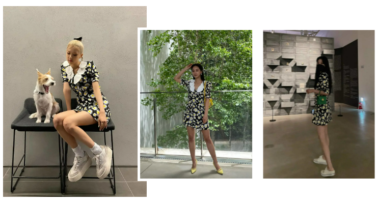 朴彩英、Yuri和韩艺瑟都有的Saint Laurent小雏菊裙,穿上小白鞋和高跟鞋是两种不同的风格,可休闲可女人味十足。