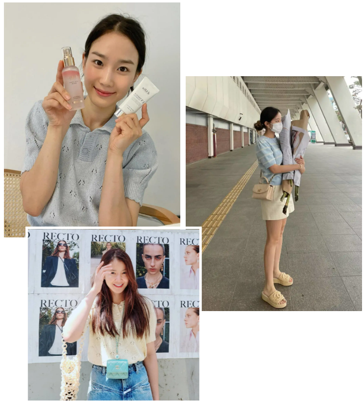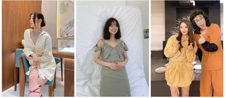 想要多点小心思的,可以试试镂空元素。李诗英、孝敏和张姬领的T恤,女人味十足,品牌是Your Name Here。这个牌子这段时间穿的人特别多,价格在500元左右,官网可以买到。