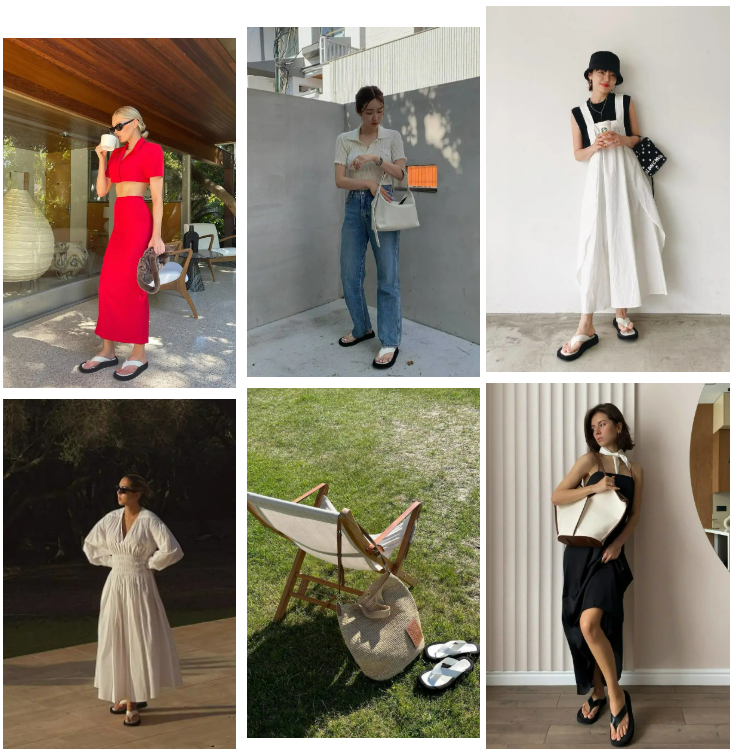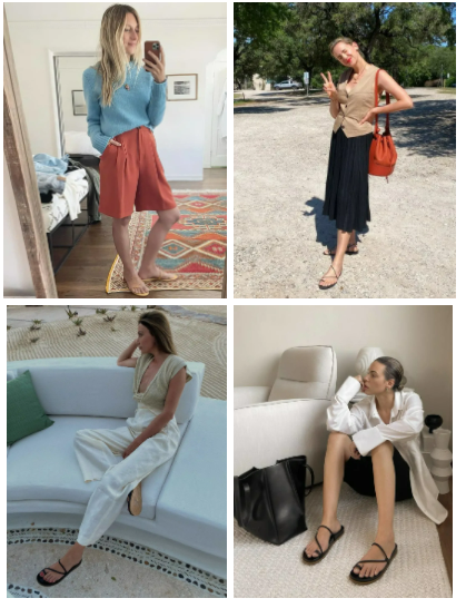 The Row的人字拖,随便点进一个博主的ins都有它的身影。看似平平无奇,实则啥都能搭。看看Elsa、车静媛、Ami、Hanna MW的示范比起黑色,我会更倾向于白的。