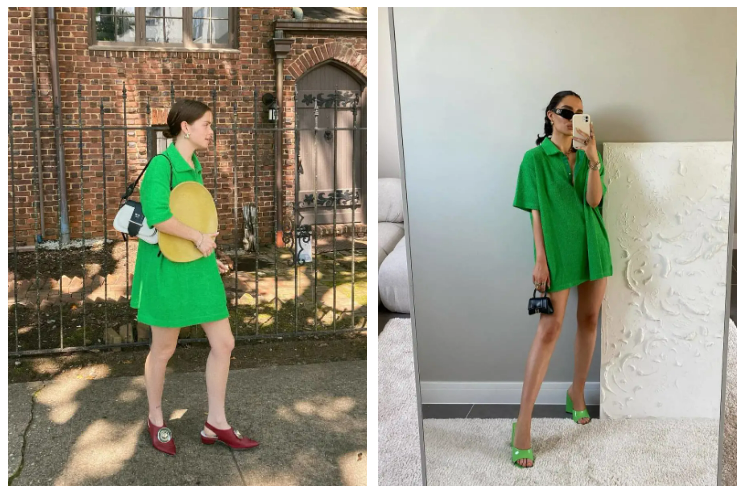 他们最近又出了好多绿衣服。Reese和Alicia Roddy撞衫的绿色polo裙,我就蛮喜欢。把春夏穿上身,看着很有活力。顺便夸一下Reese脚上这双Bimba Y Lola的尖头鞋~