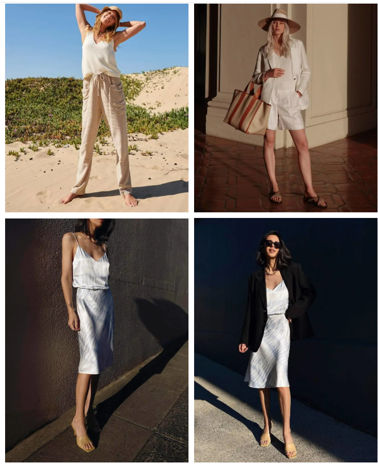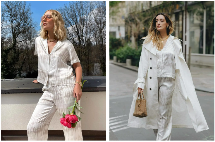 Hoppe都选了针织款。澳洲博主Petra则穿了真丝吊带和半裙一整套,挺有质感。