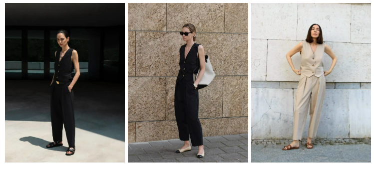 上次马甲文里就说,今年博主们都很统一的成套穿。马甲够酷,脚踩平底鞋随性大方。人民币700元左右,官网有售。