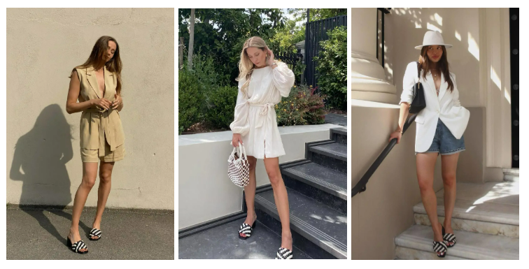 还有Flattered的黑白编织拖鞋,也很容易搭配。有一点跟,视觉上拉高,穿着也不会累。1200元左右。