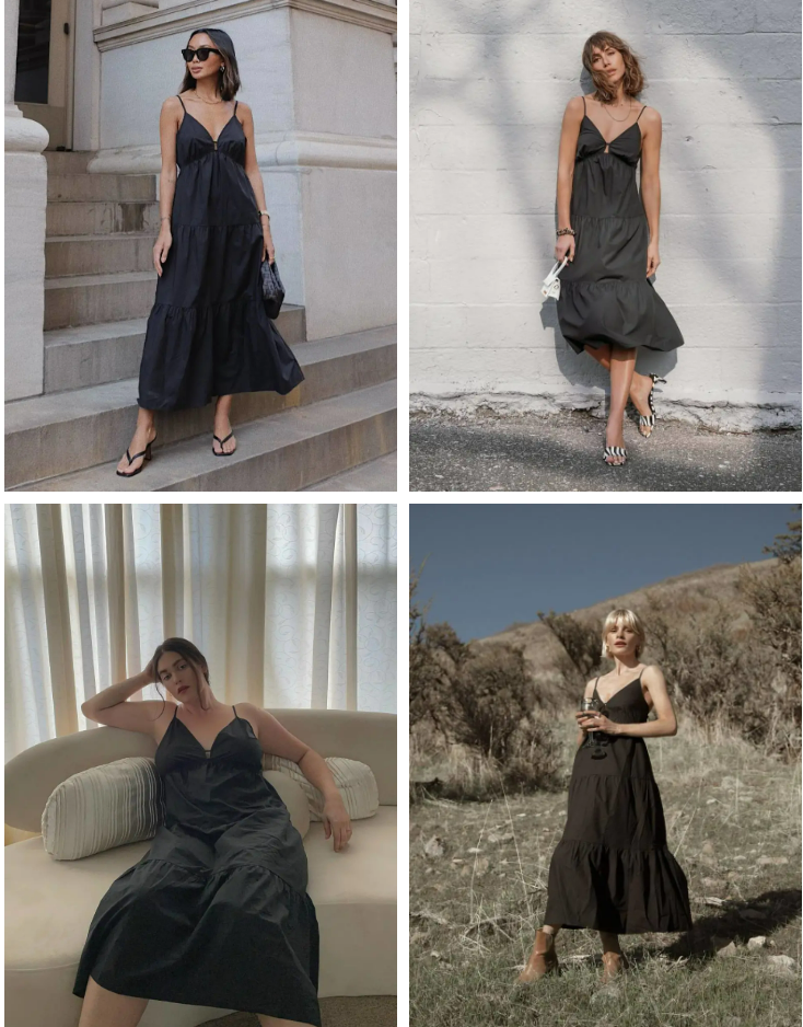 Rails的这条黑色吊带长裙有些小性感,瘦削和有肉肉的女生都能驾驭。看看大码模特Ali Tate,有时候露出来反而更美!