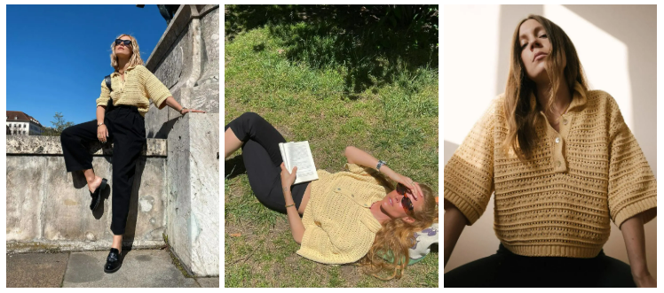 下面这件polo领米色上衣我也挺喜欢的,来自德国小众品牌Edited,两位博主Viky Rader和Blanca Miro都穿上了不出错的黑裤子。500元不到,就能过一个灿烂的夏天。