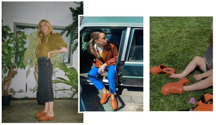 下面的厚底圆头拖鞋也很受欢迎。来自Simon Miller,有五种颜色,个人比较喜欢橘色这双,在夏天能起到点睛的作用。看着很好踩,不会累的样子。