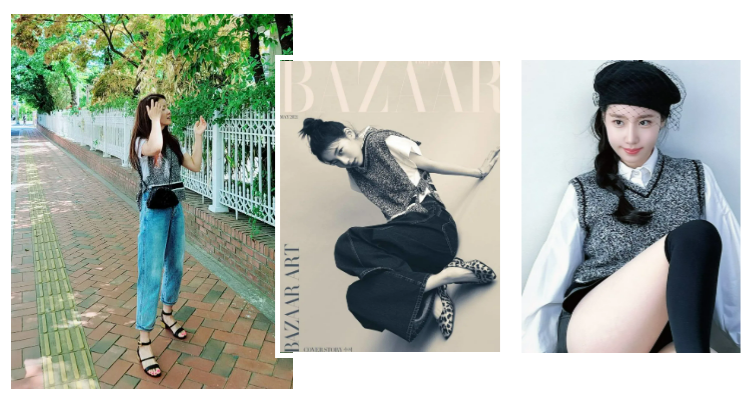 而Dior的这件针织背心,绝对对得起“拍片大户”的称号。不过呢,大家一般都选择穿在白T或白衬衫外面,像李诗英、秀智和乔炫这样