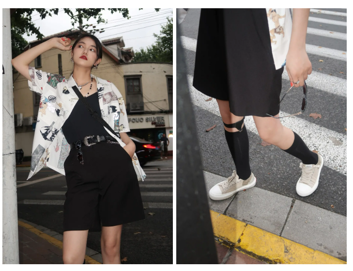 高筒袜有学生活力感,想要避免袜子显腿短的,一定要注意袜筒高度的选择哦。可以选择刚刚高过鞋子一点盖过脚踝,或者直接到膝盖、让露出的腿部较少,中间长度反而更容易显腿短。