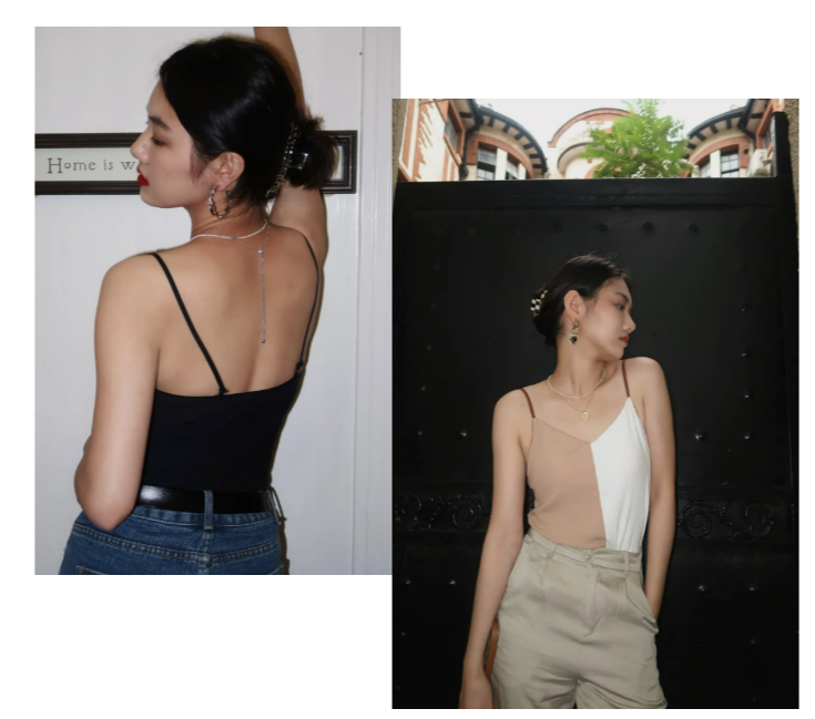 增加层次,在日常T恤上叠搭做文章就好啦~各种好看的吊带都值得尝试。不过呢,宽松、留有余地的吊带,舒适感会更好。