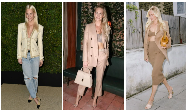 你看,真空单穿优雅的小香风外套就够大胆了,她还再搭个破洞牛仔裤;优雅的职业套装吧,内搭是个超短crop top,像辣妹一样露肚皮: