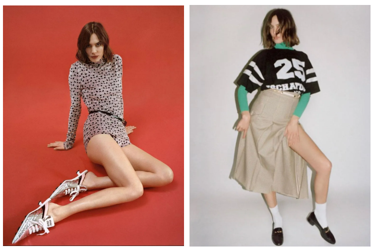 加上她的脸自带成熟英气,体型又是女性特征不明显的瘦高薄型,这让她在驾驭少女感单品时有了天然的平衡,甚至你会觉得她依旧酷酷的,还有点少年气。