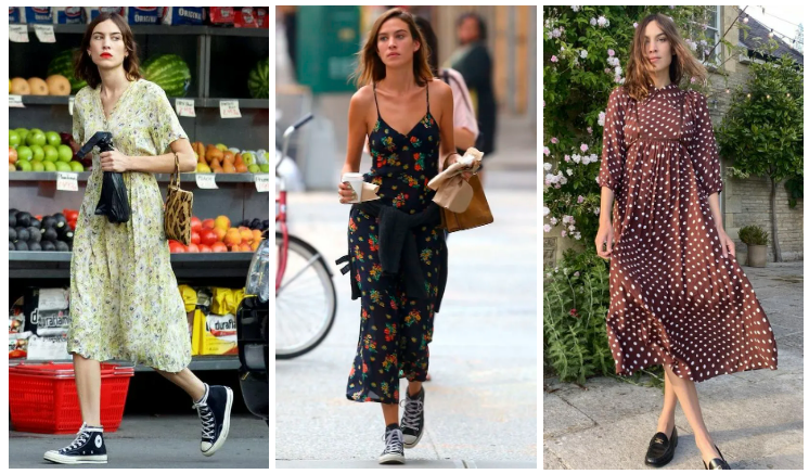 或是田园少女的碎花裙,搭配一双休闲的帆布鞋或中性的乐福鞋: