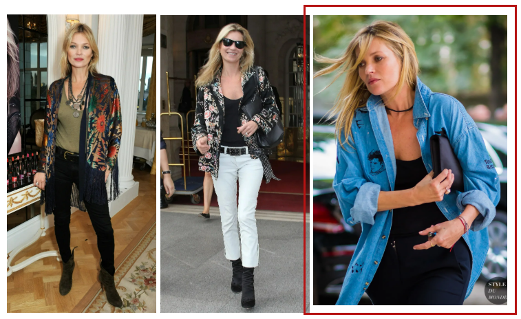 Kate Moss的风格深受70年代叛逆摇滚青年影响,他们永远跟传统的一切对着干。大环境有多爱简洁,他们就有多爱复杂。平时穿衣时,叠搭是最常见的事。