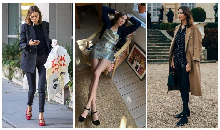 她尤其善于选择出其不意的鞋子。比如成熟优雅的look,搭配一双少女感的玛丽珍: