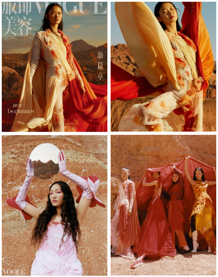 而她上任后的第一封也是姗姗来迟。金九封面大胆启用19岁的素人、远赴张掖,心有多大气势就有多磅礴。加上new beginnings的新篇章,宣扬多元化的美,Margaret Zhang来势汹汹。各位觉得拍得怎么样呢?
