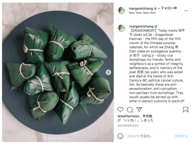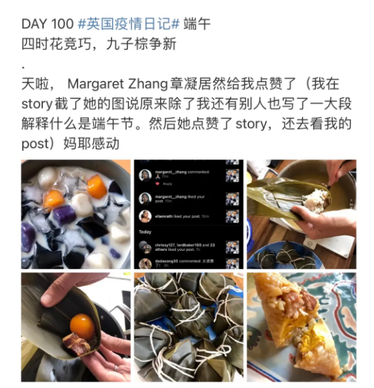 她也会在博客和ins上花很长的篇幅来解释端午节和中秋节的由来,会把粽子和饺子的做法写得一清二楚。清明节会做老家的青团和食饼筒。