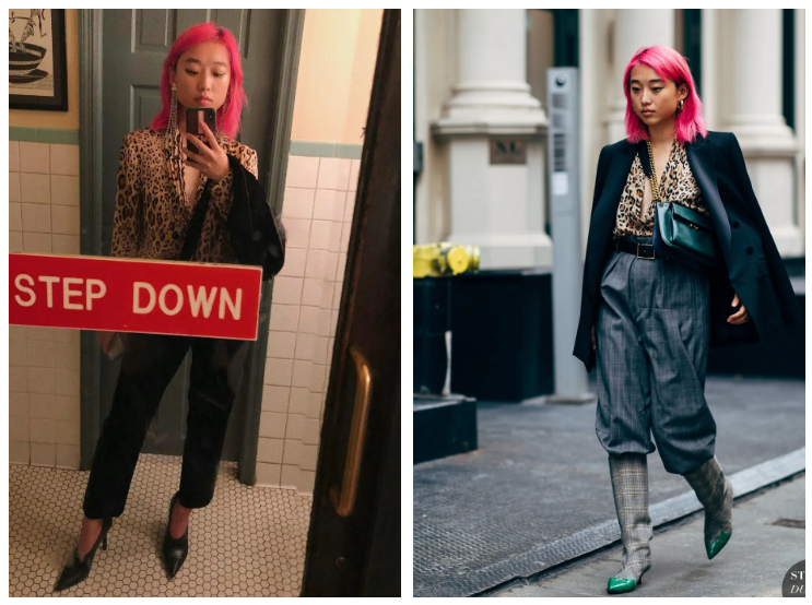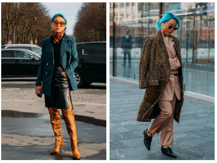 其次,和发色一样,她钟爱各种夸张的印花。有难度的动物纹,说来咱就来~从衬衫、大衣都靴子都不会放过。