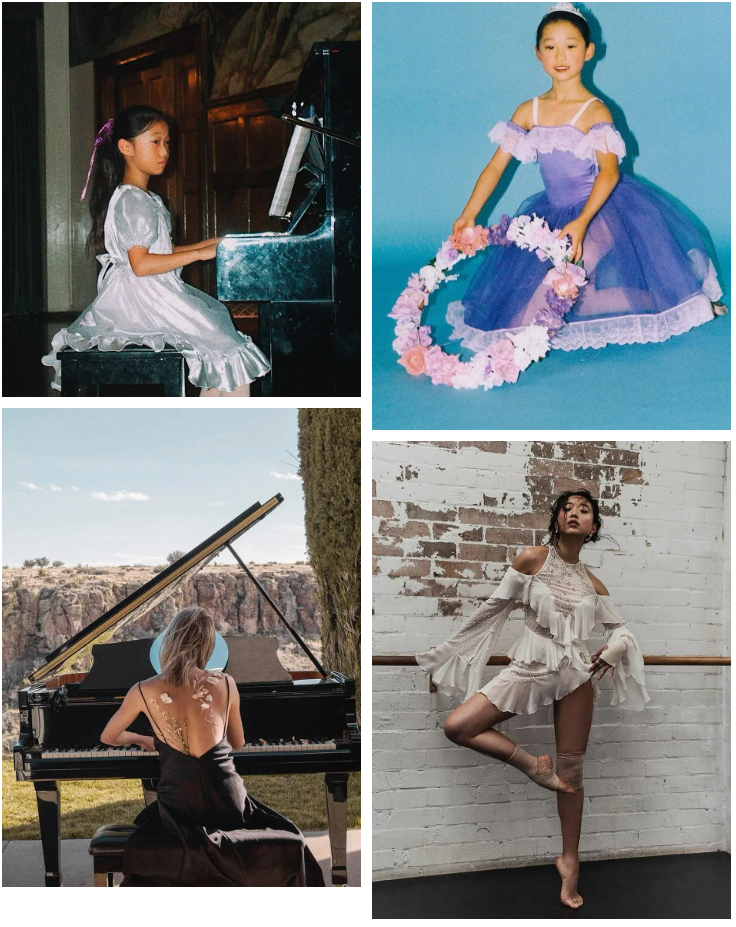 她从小就学习古典钢琴和芭蕾舞。父母对她要求非常严苛,小时候家里没有电视,在家只能听电台新闻,大多时间都在各大兴趣班打转。