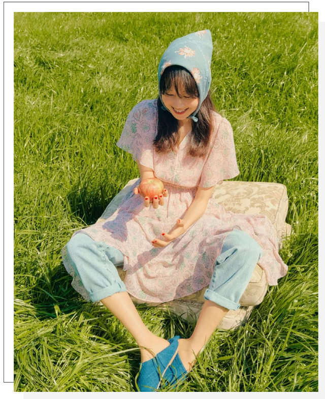 日常也是穿这类风格最多,粉嫩的、柔和的、学院的单品,在她身上不要太合适。