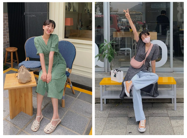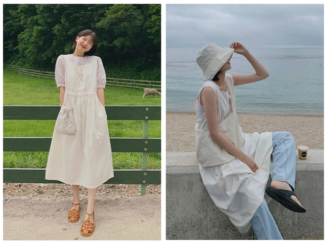 See,同样的小白裙,左边是甜美可人的乖乖女,右边就是酷酷的日系街头风小姐姐~