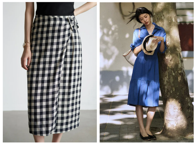 的品牌曾出过一款蛮典型的OL一步裙,一黑一卡其。为了显年轻,裙长已经被控制的比较短了。