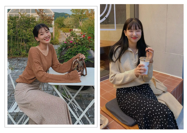 *注:再再强调一下,如果你本身就喜欢甜美可爱的风格,那右边的图完全没有任何问题,放心去穿哈!这里只说明风格差异~