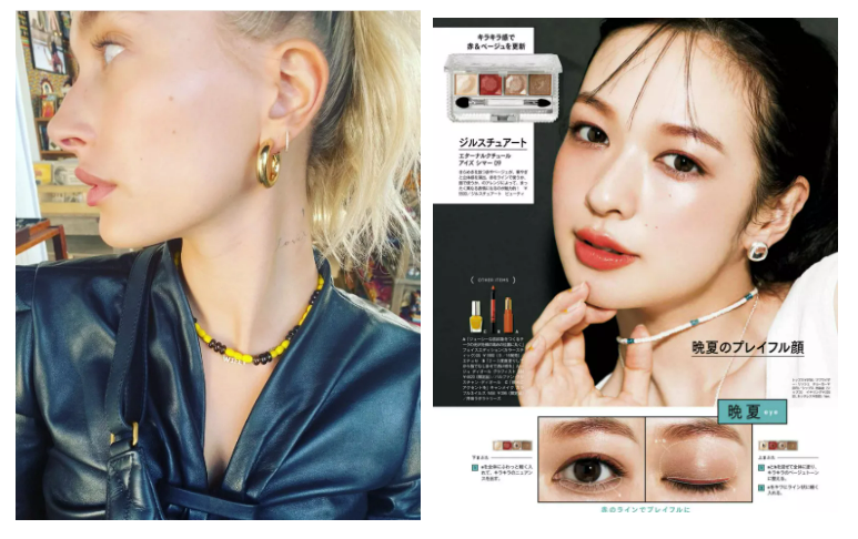 博主Pernille Teisbaek、日杂麻豆、Joy妹子都戴过,细细一条串起来很显白、百搭,当作小饰物装点造型还挺不错滴~