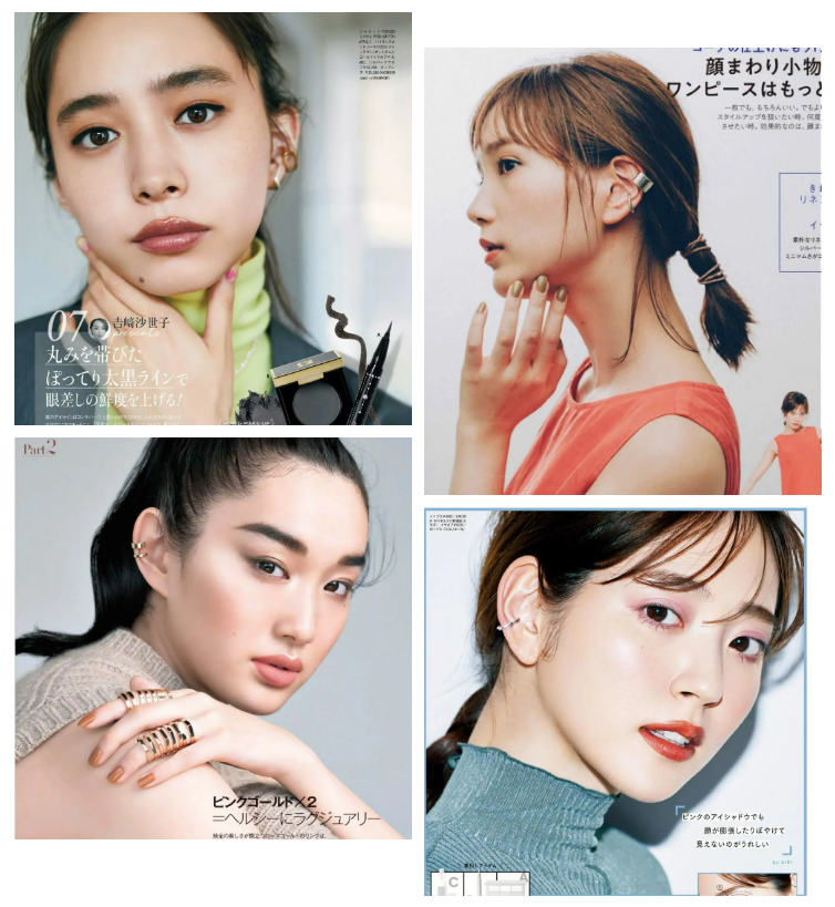 戴耳廓上视觉上扬,显年轻显气场。点睛效果不错,藏头发里悄悄露出来都忍不住多看两眼。修饰脸型,也适合亚洲女生。