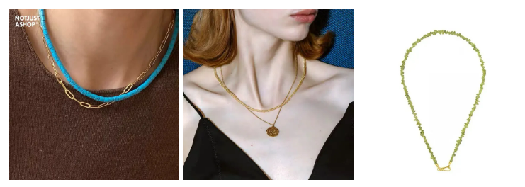 总的来说,因为串珠项链本身“浮夸吸睛”,搭配就得尽量简单干净,过于复杂的配色和单品需要避免。