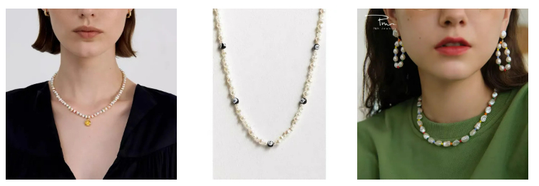 米粒珍珠除了项链还有手链、戒指、耳环等。
