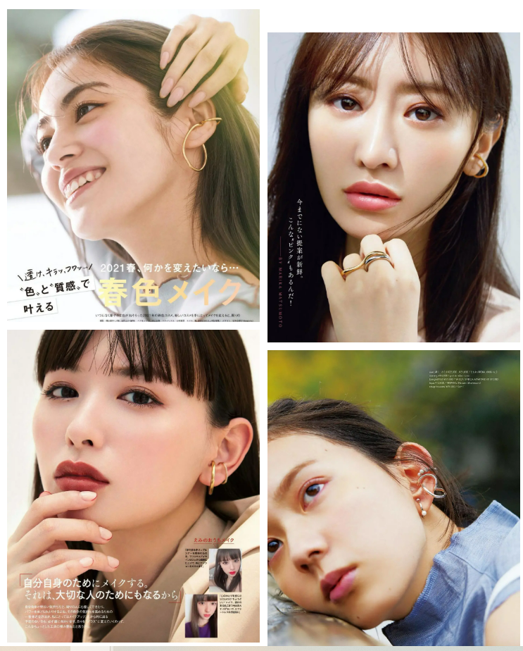 也是日杂出镜率高的一款,桐谷美玲、森绘梨佳、三吉彩花都戴过。能和窄版线圈或极简耳坠叠搭,单独佩戴也超时髦。