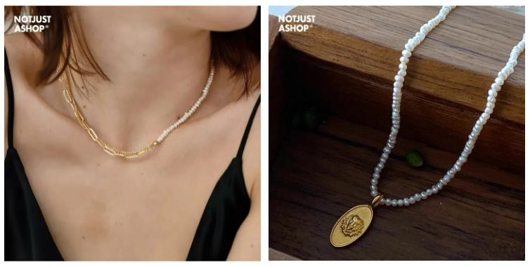 但个人最推荐的还是金色吊坠与珍珠结合的设计。原本这两个元素就绝配,配一些法式单品完美~