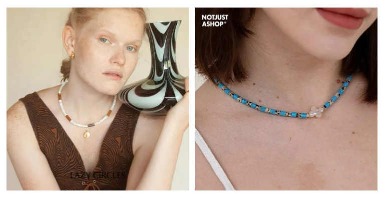 BTW,颜色太杂也不行。纯色天才石材如珊瑚、玛瑙、绿松石、贝壳质感好,不复杂,穿搭也简单。