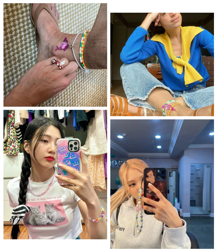 除了串珠项链,还有凡男人博主串珠脚链/戒指,Joy的手链、Rose的手机链。看起来都好可爱,满满的少女心!
