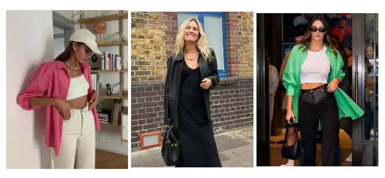 Mary Jean、Lucy Williams和肯豆都在这么穿,一件oversized男友衬衫+戴一串彩色串珠项链,满满的夏威夷度假风情~
